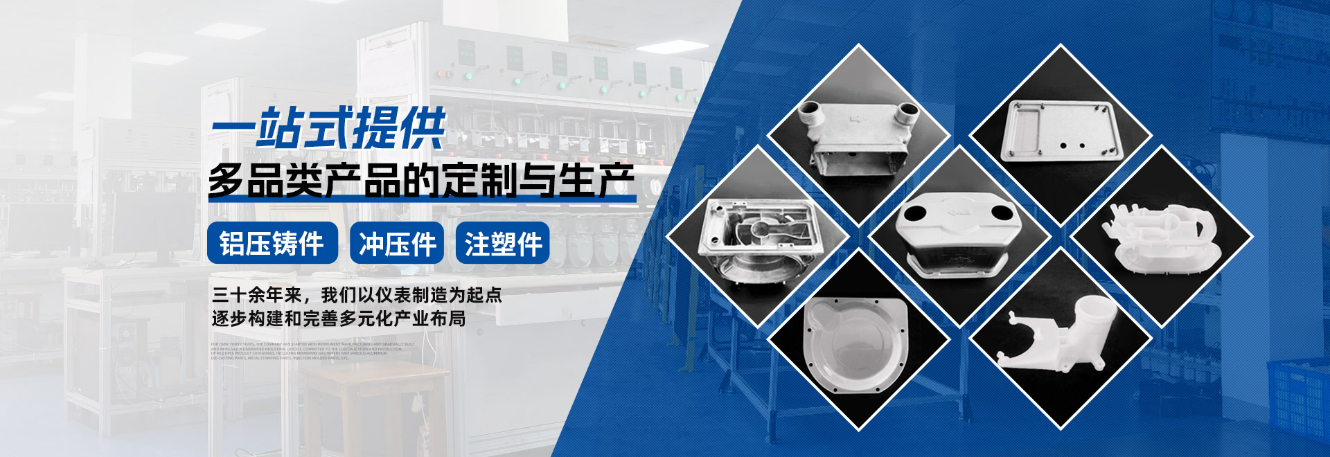 三十余年来,公司以仪表制造为起点,逐步构建和完 善多元化产业布局,致力于多品类产品的定制与生产,包 括膜式燃气表及各类铝压铸件、五金冲压件、注塑件等。